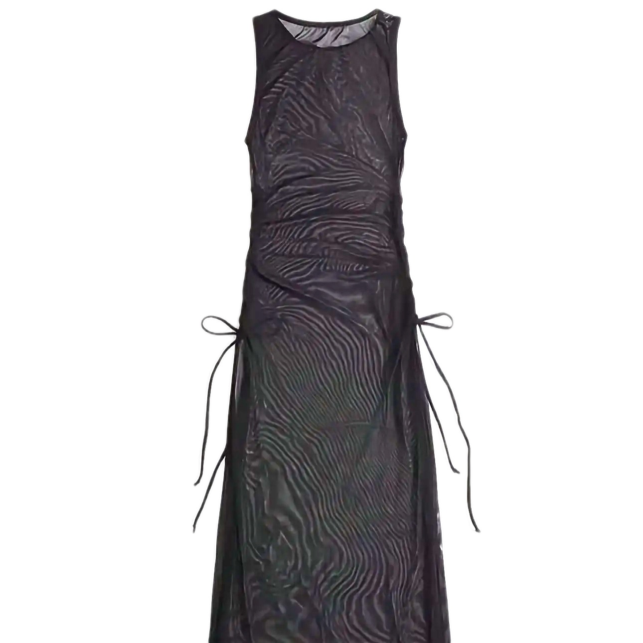 Diseño refinado y femenino que aporta elegancia a cualquier look de playa o resort. Este cover up largo de malla suave y ligera presenta una silueta estilizada de una sola pieza, con delicadas aberturas laterales que realzan la figura de forma sutil. Sus ajustes laterales permiten un calce personalizado, logrando un equilibrio perfecto entre comodidad y sofisticación. Ideal para complementar trajes de baño con un estilo moderno y distinguido.